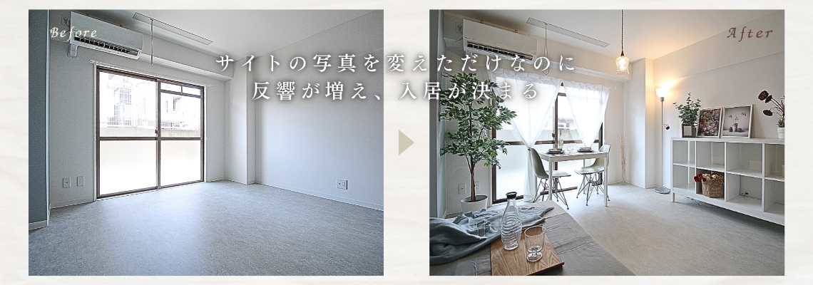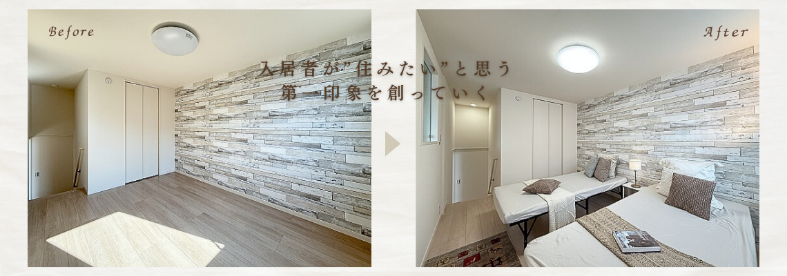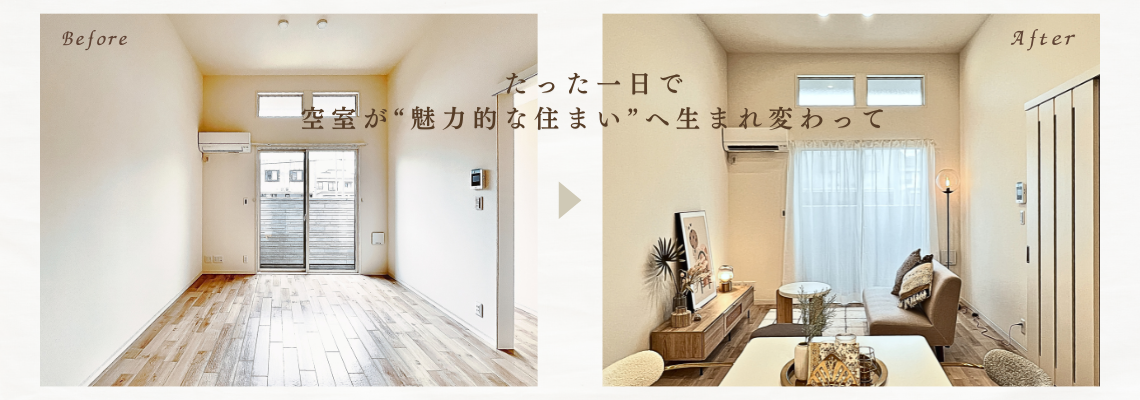 戸建賃貸の内装リフォーム後のホームステージング事例。スーモ掲載後、約1か月で入居者決定。